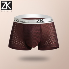 Zukulife男士内裤 男平角裤 冰丝网孔四角裤青年中腰运动透气裤头