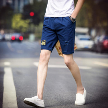 夏季五分破洞休闲短裤男簿款韩版男士中裤沙滩裤5分直筒西裤夏天