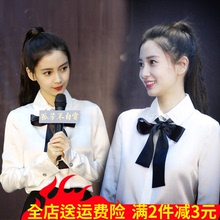 韩范春装甜美清新系带蝴蝶结长袖翻领白衬衫女学生打底衬衣潮