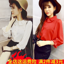 春季韩版学生气质白衬衣灯笼袖泡泡袖修身娃娃领衬衫女装上衣