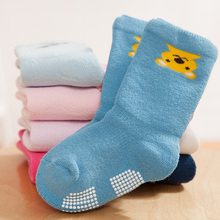 婴儿袜子秋冬毛圈加厚棉0-1-3岁宝宝袜 儿童中筒卡通防滑男女松口