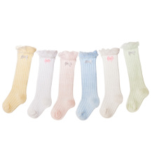 婴儿袜子夏季网眼透气薄棉 女童蝴蝶结儿童花边公主 宝宝长筒袜