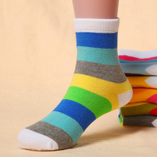 秋冬中筒儿童袜子 彩虹条纹男童女童松口童袜 宝宝高筒长筒棉袜