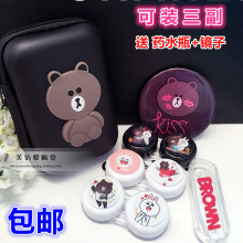 卡通近视隐形眼镜盒美瞳伴侣双联盒可爱布朗不朗熊护理三副装套装