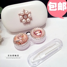 美隐形眼镜盒皮革美瞳盒伴侣盒镶钻隐形眼镜护理盒工具套装