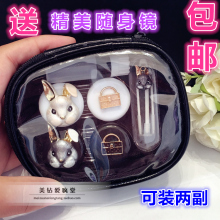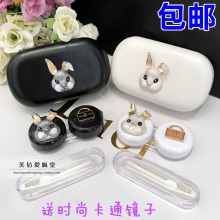 美瞳盒子隐形眼镜盒双联盒伴侣盒可爱兔子镶钻护理盒包邮