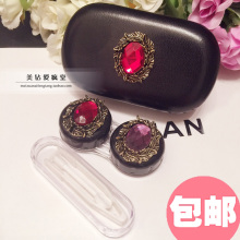 皮质隐形眼镜盒复古美瞳盒子套装镶钻双联盒伴侣盒护理盒包邮