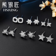 熊银匠S925银耳钉女款日韩版气质耳饰 时尚潮流耳钉耳环送女友
