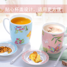 陶瓷早餐杯简约情侣对杯牛奶咖啡马克杯子带盖情人节礼物水杯