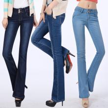 新款包邮排扣修身中腰微喇裤牛仔女裤韩版显瘦提臀喇叭裤女长裤潮