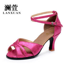 澜萱正品女士拉丁舞鞋成人中跟跳舞鞋女缎面舞蹈鞋子软底伦巴夏季