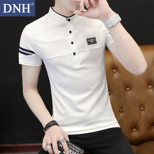 DNH2017夏季男士T恤短袖立领条纹打底衫潮修身韩版个性体恤衫男装