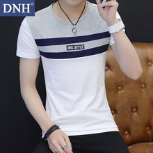 DNH2017新款夏季男士条纹短袖T恤男装拼接韩版修身体恤衫青年潮流