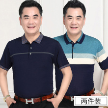[2件79]冰丝短袖t恤男中年人爸爸夏装中老年polo衫父亲节40-50岁