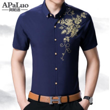 阿帕洛夏季中年男士短袖衬衫男装商务衬衣中老年男短袖衬衫爸爸装
