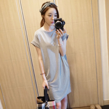 现货 简洁Againby韩国代购 夏 韩版纯色宽松显瘦圆领连衣裙