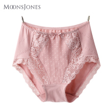梦秀侨姿大码高腰提臀内裤女胖mm棉质面料性感蕾丝边女士三角裤