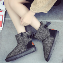 vetoo新雪地靴女低筒短靴子毛呢蝴蝶结女鞋冬季加厚保暖棉鞋防滑