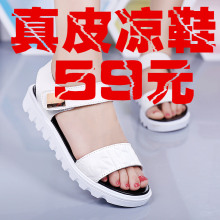 真皮女凉鞋2017金属魔术贴女生韩版百搭平底防滑厚底松糕女夏凉鞋
