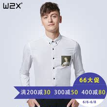 w2x天丝英伦修身休闲长袖衬衫 夏季免烫印花青年男士韩版寸衫寸衣