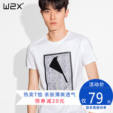 w2x男士夏季短袖T恤印花纯棉圆领打底衫全棉体恤男韩版修身衣服潮