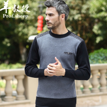 羊教授新款中年男装加厚男士毛衣圆领套头秋季中老年爸爸装针织衫