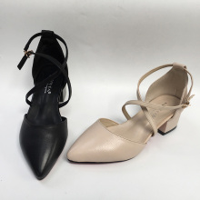 金冠2017夏款特价处理尖头包体中空交叉绑带搭扣低粗跟真皮女单鞋