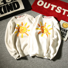 小太阳 秋冬季原创潮流印花男装外套 日系青少年学生加绒套头卫衣