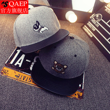 QAEP秋季新款嘻哈帽卡通狗狗图案棒球帽 呆萌动物刺绣遮阳帽子