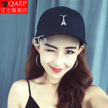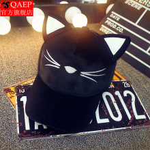 QAEP可爱猫咪耳朵帽子 黑色图案棒球帽 夏天潮女遮阳鸭舌帽子