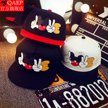 可爱卡通嘻哈帽子女同款胶印剪刀手势街舞帽韩版棒球帽平沿亲子帽