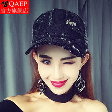网帽女潮三色棒球帽子夏季防晒遮阳凉帽透气鸭舌帽蕾丝亮片弯沿帽