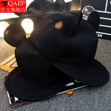 QAEP 明星同款帽子平沿棒球女 可爱猫咪耳朵帽子 嘻哈街舞遮阳帽