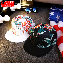 qaep树叶大碎花纹字母 嘻哈棒球帽子 潮男女夏天刺绣平檐沿遮阳帽