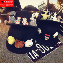 甜美可爱卡通动物头帽子小熊兔子儿童平沿手工亲子棒球帽韩版男女