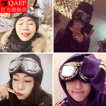 韩国冬季毛线帽子女眼镜帽加厚保暖针织帽时尚滑雪帽潮飞行员冷帽