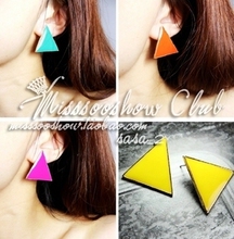 欧美饰品 韩国几何 三角形 糖果色耳钉耳环无耳洞耳夹女