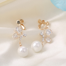 超闪锆石 双层蝴蝶闪钻珍珠 耳环 名媛气质耳坠 无耳洞螺丝耳夹女