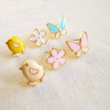 超萌耳环耳钉 小鸡 蝴蝶 五辨花三件套软垫无耳洞耳夹