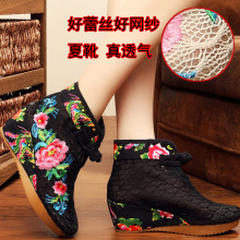 热卖新款老北京布鞋蕾丝网纱鞋透气民族风绣花布靴夏季靴子女单鞋