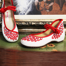 春季 老北京布鞋女鞋单鞋 搭扣防滑水钻内增高坡跟 民族风绣花鞋