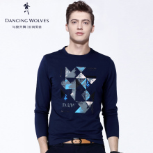 与狼共舞长袖T恤2017春装新款男士时尚印花圆领韩版潮t 男装 6561