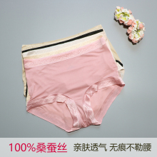 针织真丝女内裤 一片式透气舒适大码无痕包臀抗菌桑蚕丝平角内裤