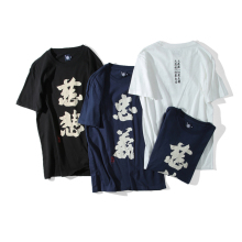 染吾夏季短袖t恤男士中国风慈悲文字男女情侣衫基友装竹节棉潮
