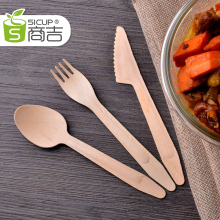 商吉一次性木质刀叉勺牛排西餐勺子餐具餐刀餐勺木汤勺叉子100只