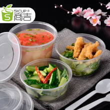 商吉一次性米饭盒圆形塑料餐盒透明便当饭盒打包盒外卖快餐盒汤碗