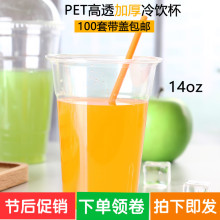 包邮 400ML一次性高透明塑料杯14盎司PET冷饮杯 奶茶果汁杯 100套