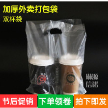 一次性双杯外卖袋 奶茶咖啡外卖塑料袋 手提塑料袋 打包袋100个