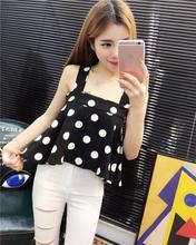 实拍洋装韩国版2016性感小吊带宽松蓬蓬小背心圆点无袖上衣百搭潮