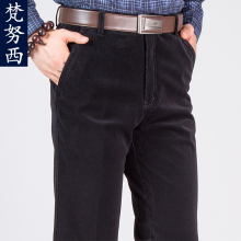 春季灯芯绒男裤中年休闲裤条绒裤男士裤子爸爸中老年宽松直筒长